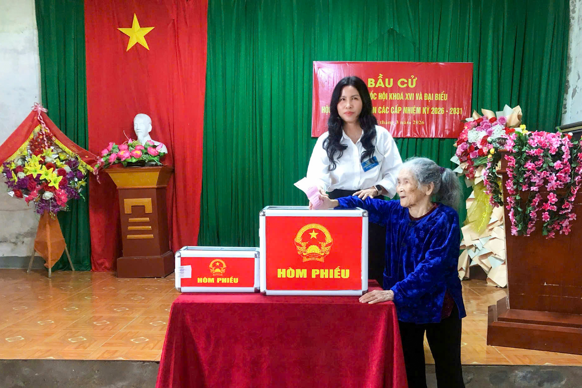 Thực hiện ngày hội lớn của toàn dân, với sự chuẩn bị chu đáo, khoa học và tinh thần trách nhiệm cao nhất, toàn thể 14.212/14.212 cử tri trên địa bàn xã đã trực tiếp đến các điểm bỏ phiếu để thực hiện quyền và nghĩa vụ công dân của mình. Toàn bộ 31/31 khu vực bỏ phiếu đã về đích an toàn, đúng quy định pháp luật.