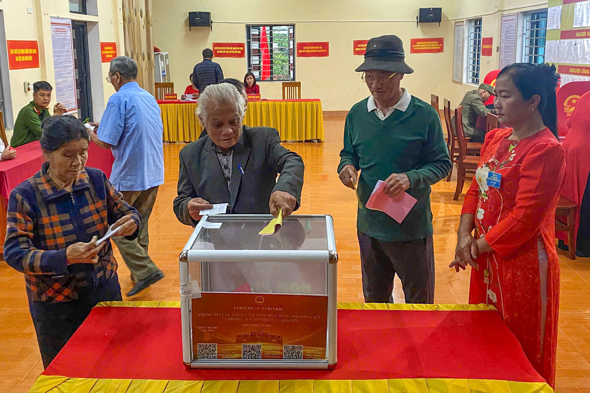 Tại các điểm bỏ phiếu, không khí diễn ra rất sôi nổi và trật tự. Cử tri Đan Hải đến tham gia bầu cử với tinh thần vui tươi, đặt niềm tin lớn vào việc lựa chọn những người đủ đức, đủ tài vào bộ máy chính quyền từ Trung ương đến địa phương.