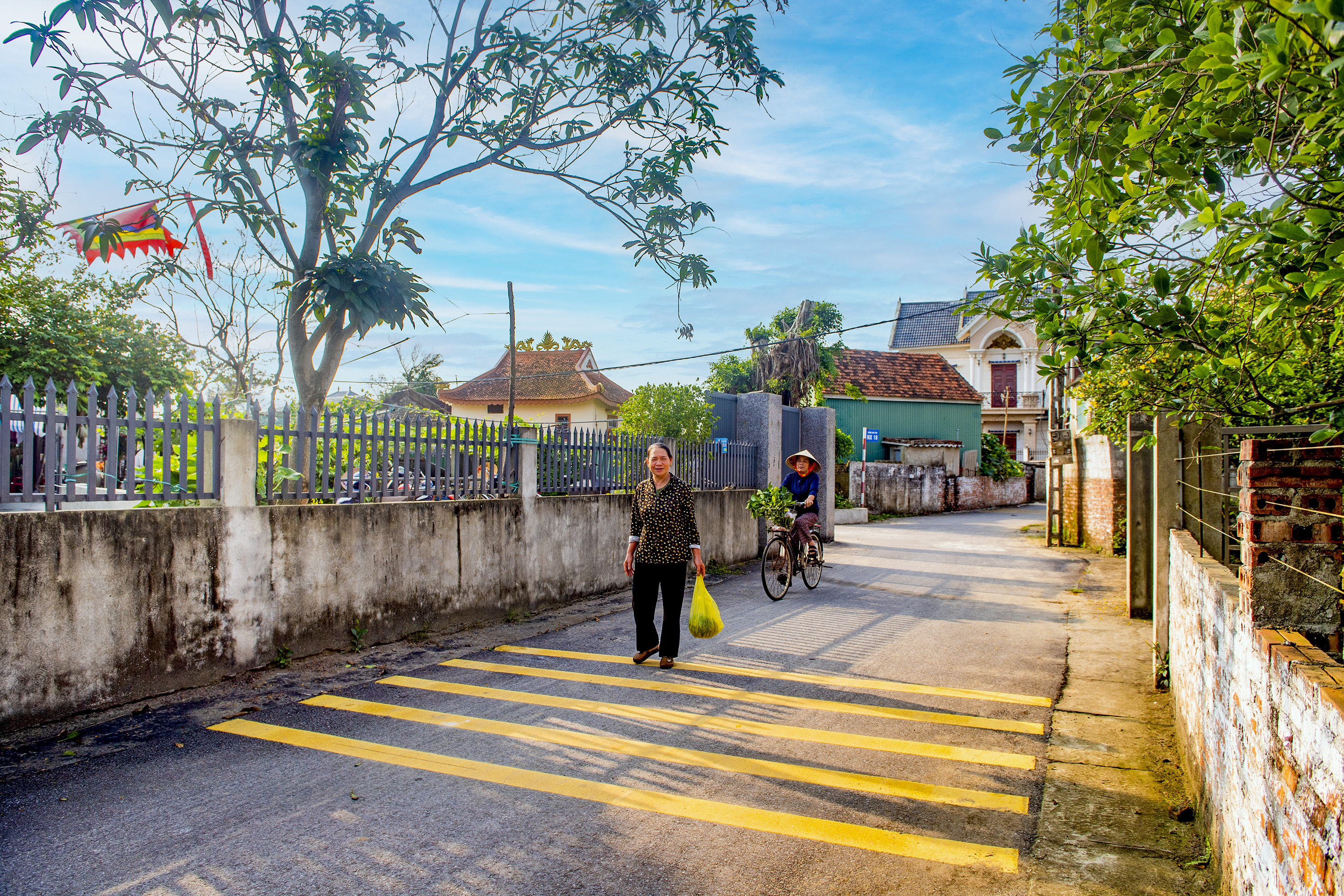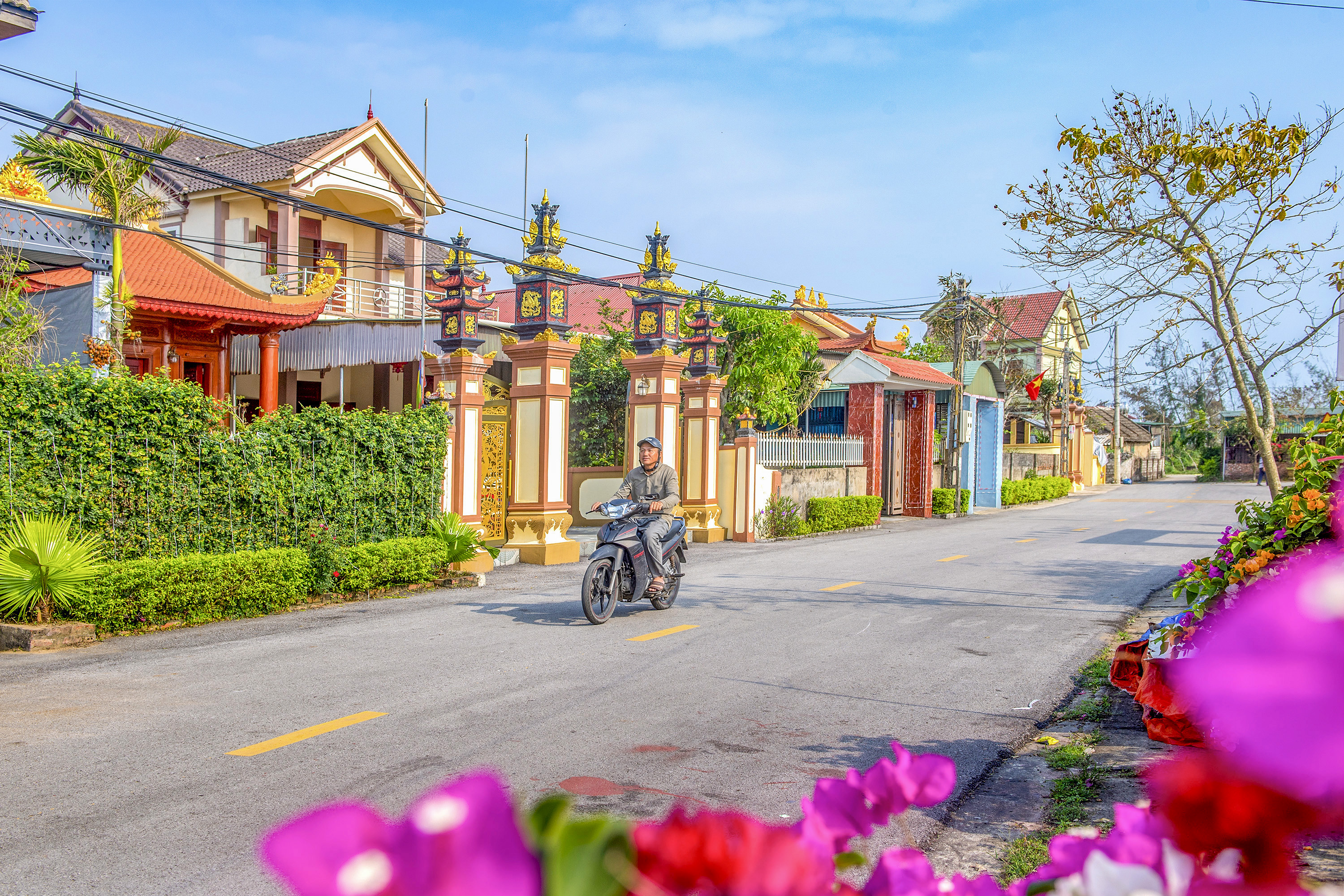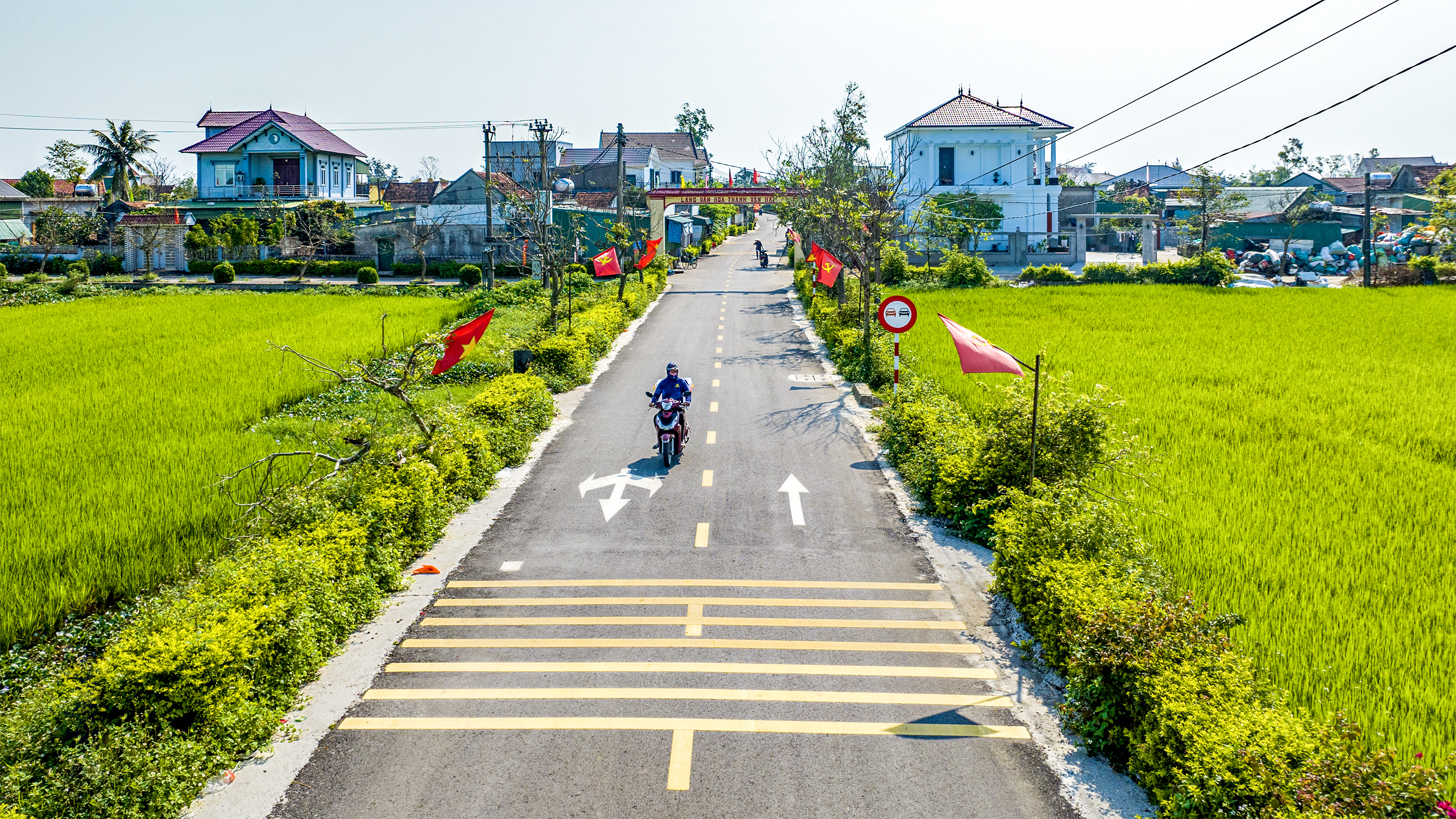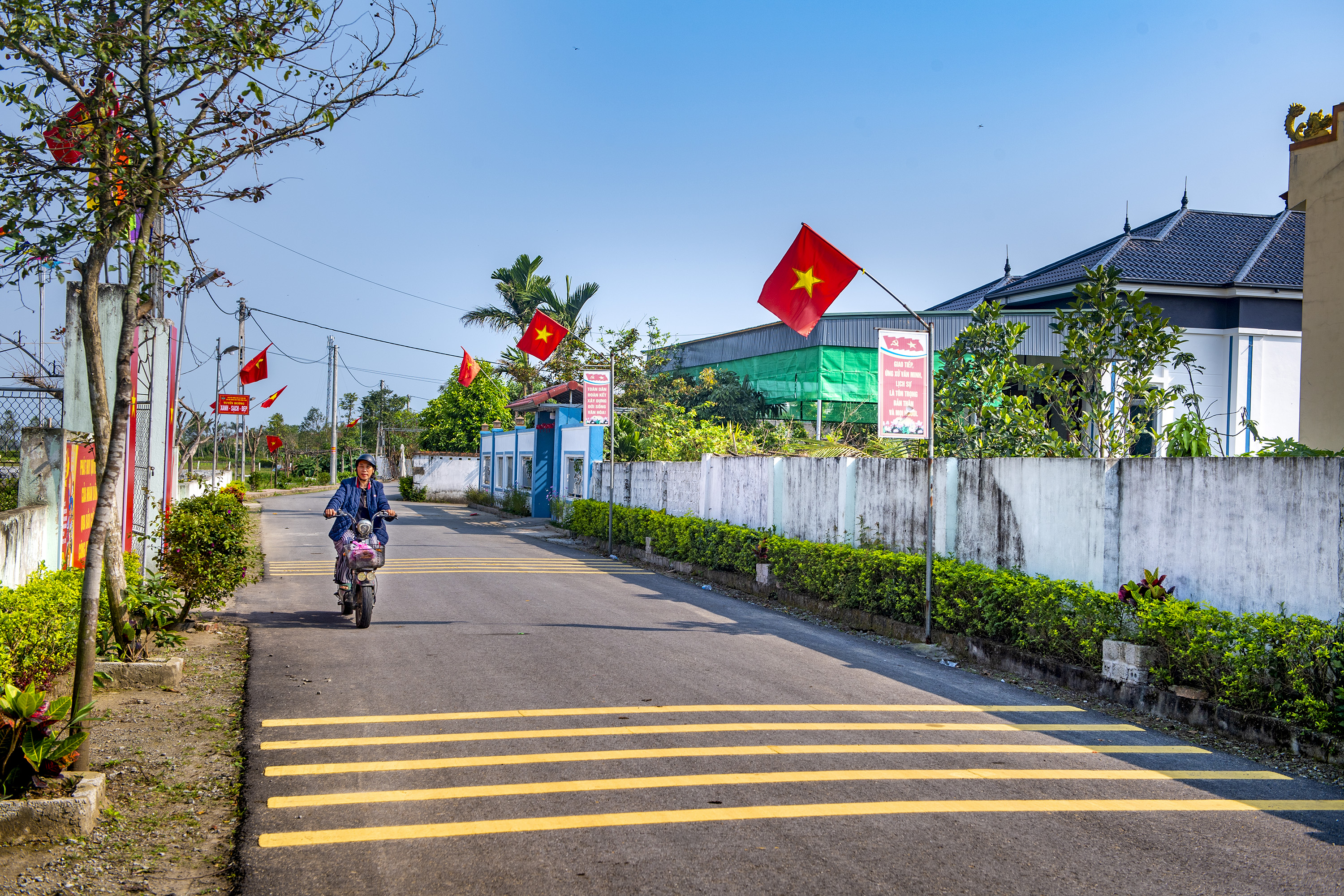 Hệ thống biển báo giao thông, vạch kẻ đường, sơn gồ giảm tốc được trang bị đầy đủ, chuyên nghiệp như phố thị, mang lại sự an toàn và vẻ đẹp văn minh cho vùng quê. Những tuyến đường khang trang này chính là kết quả của sự đoàn kết, chung sức đồng lòng giữa chính quyền địa phương và Nhân dân.