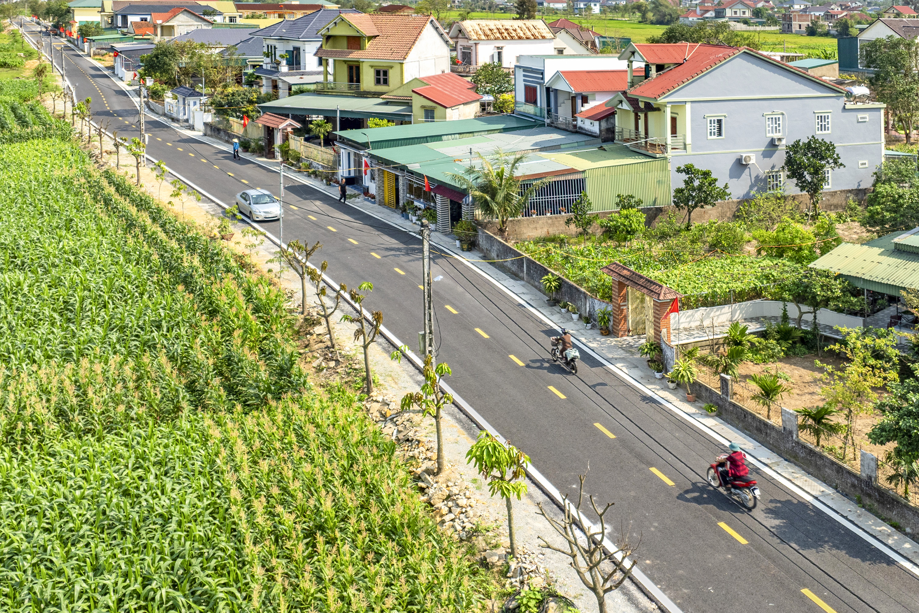 Cùng với việc tôn tạo cảnh quan, đường nhựa đang mở rộng cơ hội sản xuất, kinh doanh. Giao thông nội đồng thông thoáng đã tạo điều kiện tối đa cho cơ giới hóa nông nghiệp, giảm chi phí vận chuyển, thúc đẩy kinh tế biển và kinh tế hộ gia đình phát triển mạnh mẽ.