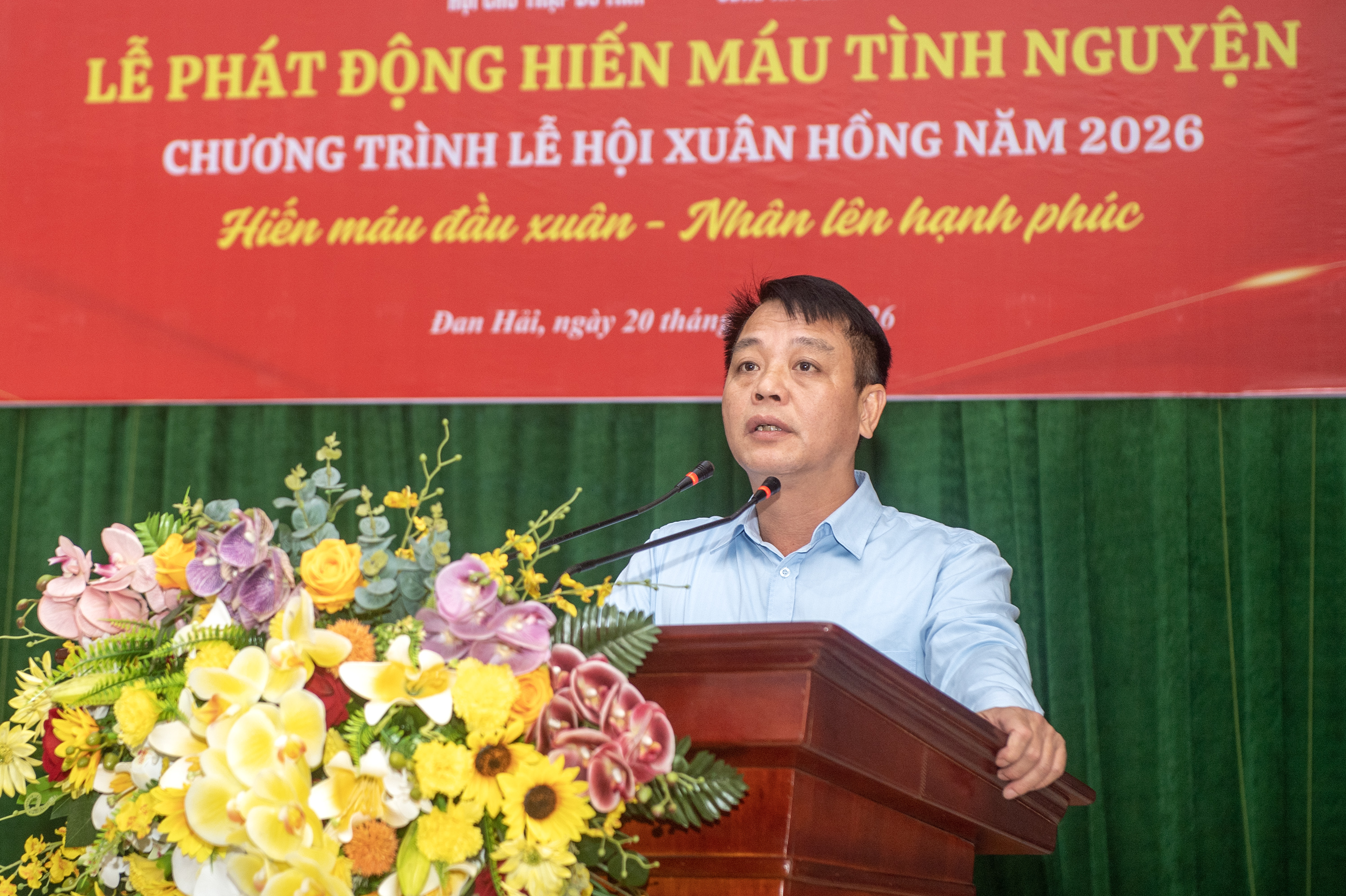 Đồng chí Phạm Xuân Lương – Phó Chủ tịch UBND xã Đan Hải, phát biểu hưởng ứng phòng trào hiến máu tình nguyện