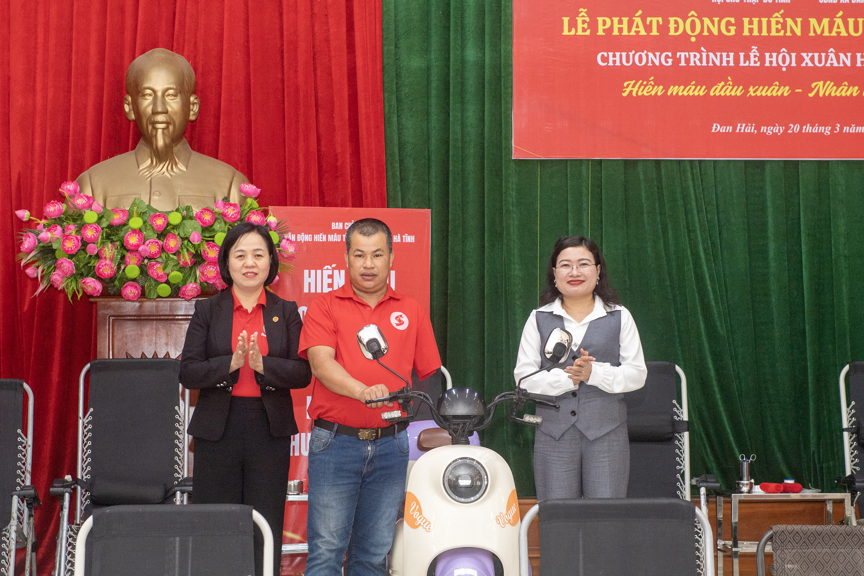 Điểm nhấn xúc động của chương trình là phần vinh danh đồng chí Cao Đức Trâm (thôn Tiến Thọ, xã Đức Quang). Dù khuyết tật ở tay, đồng chí đã kiên trì hiến máu tình nguyện 54 lần. Để tri ân nghị lực "tàn nhưng không phế", BCĐ tỉnh đã trao tặng đồng chí một chiếc xe máy điện, góp phần hỗ trợ việc đi lại và lan tỏa tinh thần sống đẹp đến cộng đồng.