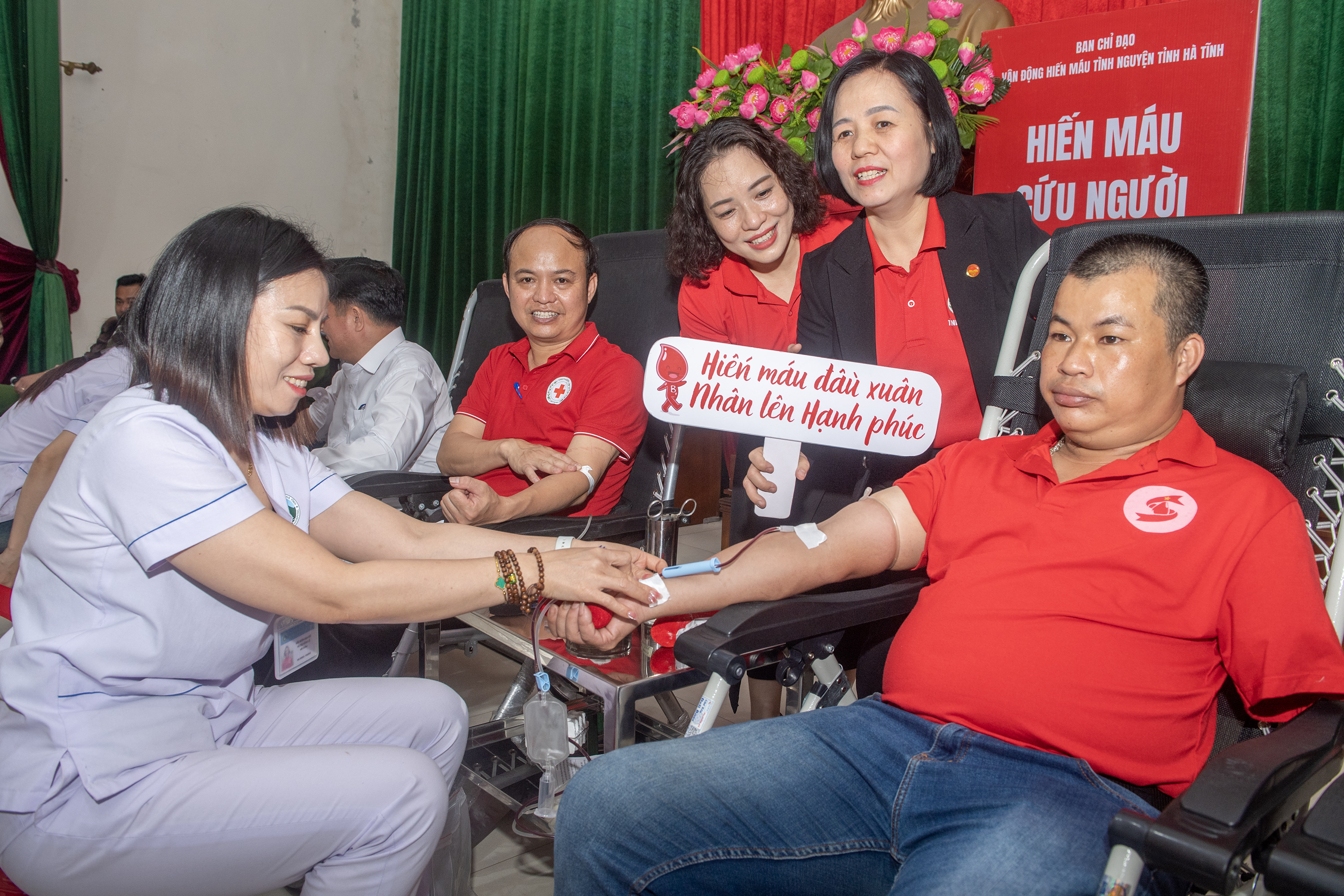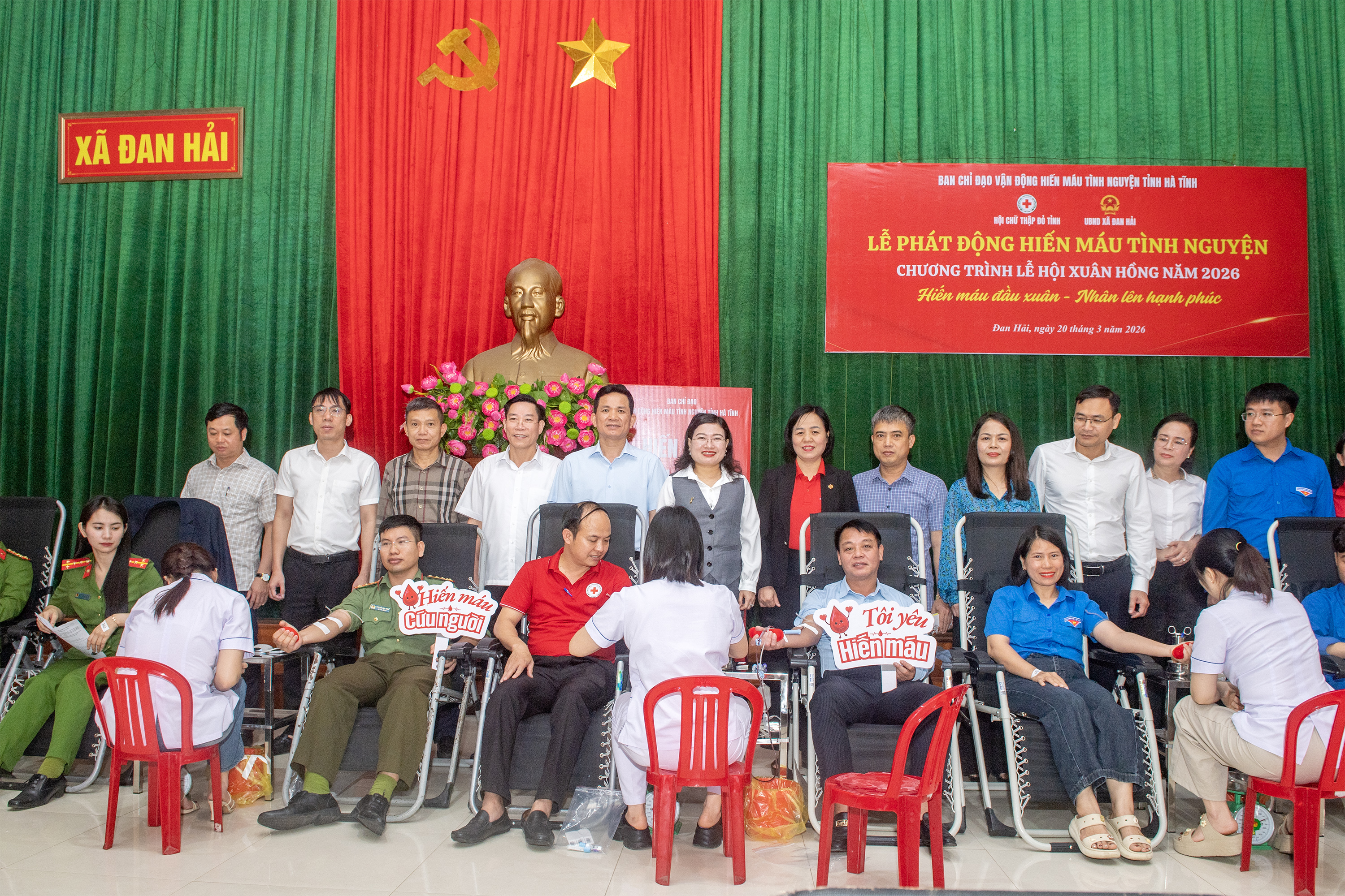 Tham dự buổi lễ có đồng chí Nguyễn Thị Nguyệt – Phó Chủ tịch UBND tỉnh, Trưởng BCĐ vận động Hiến máu tình nguyện tỉnh; đồng chí Lê Thị Mai Hoa – Chủ tịch Hội Chữ thập đỏ tỉnh, Phó trưởng ban Thường trực BCĐ tỉnh; cùng đại diện lãnh đạo các sở, ban, ngành cấp tỉnh và địa phương các xã: Đan Hải, Nghi Xuân, Tiên Điền, Cổ Đạm.