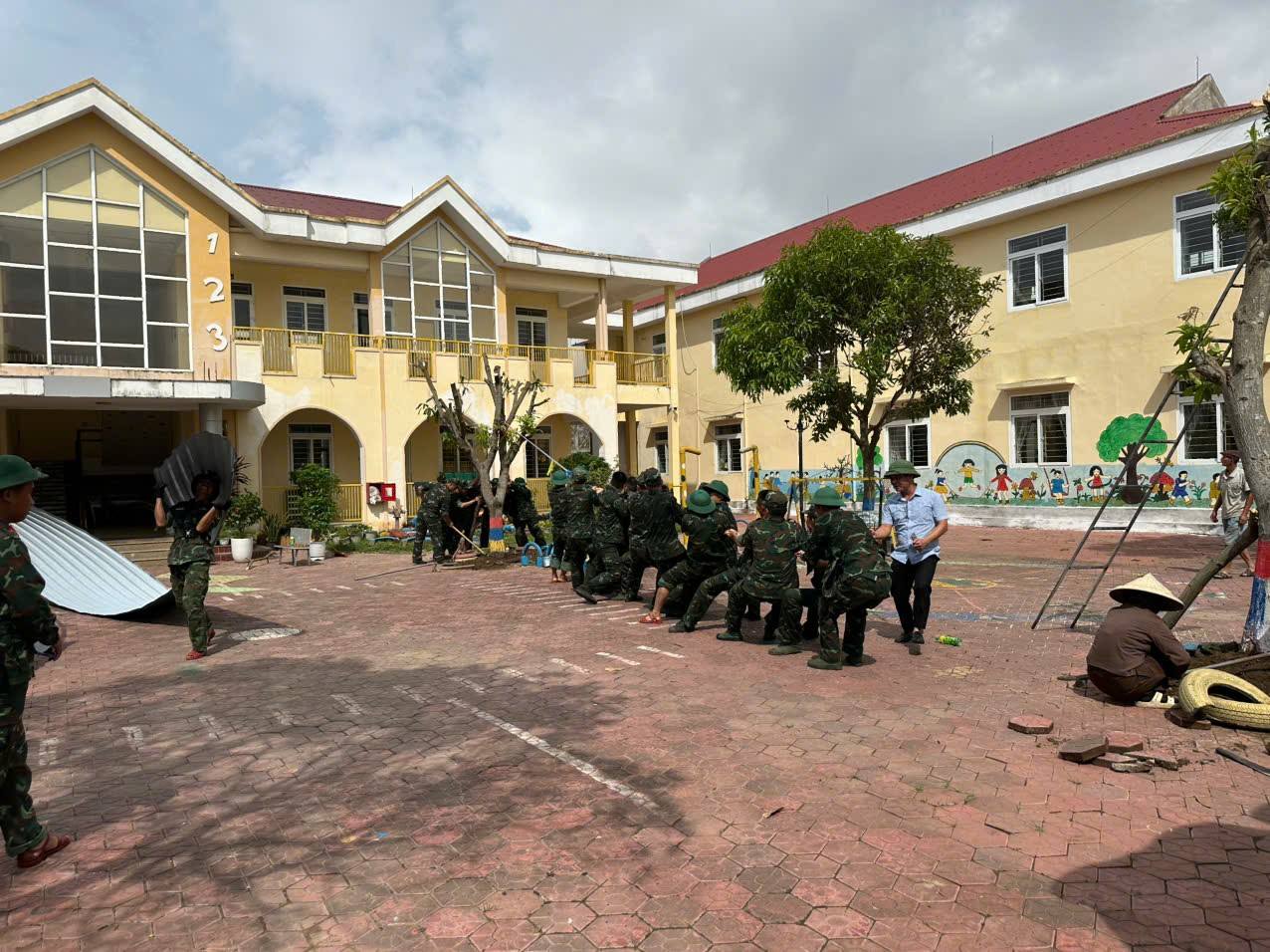 Sáng nay 01/10/2025, các đoàn công tác của BTV Đảng ủy phối hợp với các lực lượng vũ trang gồm: Trung đoàn 841, Ban chỉ huy khu vực phòng thủ nam Hồng Lĩnh, Tiểu đoàn C31 quân khu 4; lực lượng Dân quân, Công an xã hỗ trợ các điểm trường và các gia đình có hoàn cảnh khó khăn, gia đình chiến sĩ nghĩa vụ đang tại ngũ trong quân đội, hộ nghèo đơn thân, già cả neo đơn khắc phục thiệt hại sau bão.