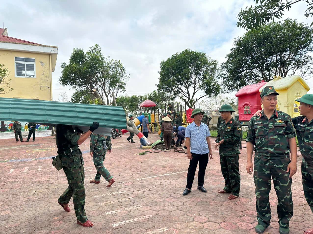 MỘT SỐ HÌNH ẢNH CÁC LỰC LƯỢNG HỖ TRỢ NHÂN DÂN KHẮC PHỤC THIỆT HẠI SAU BÃO SỐ 10