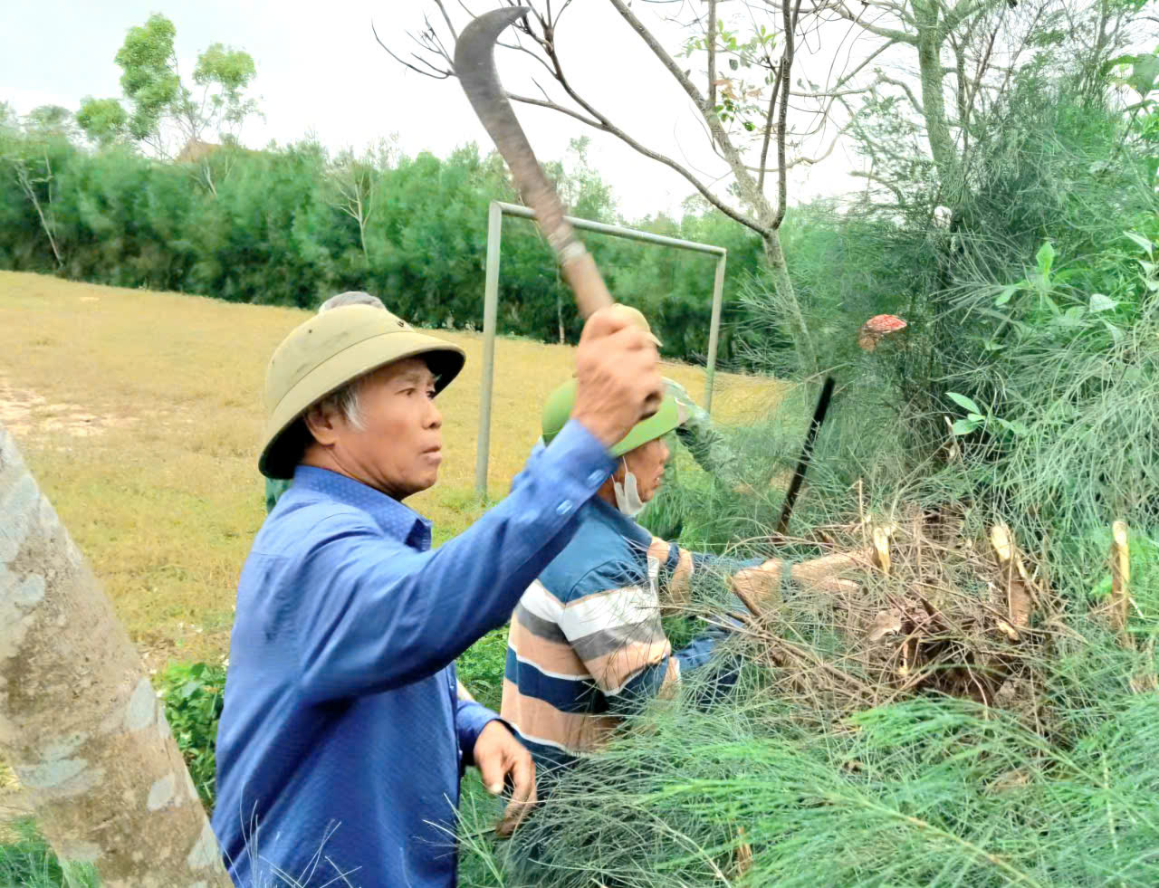 Đ/c Phan Trọng Tri - PCT UBMTTQVN xã, Chủ tịch Hội CCB ra quân lao động cùng hội viên tại cơ sở