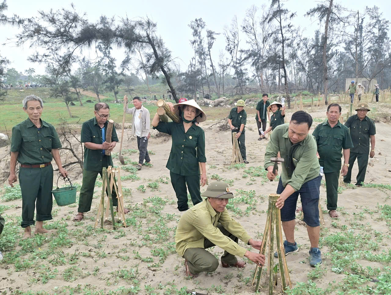 Thực hiện Chương trình công tác năm 2026, sáng 16/4/2026, Hội Cựu chiến binh xã Đan Hải tổ chức ra quân chăm sóc, bảo vệ hàng cây xanh ven biển.