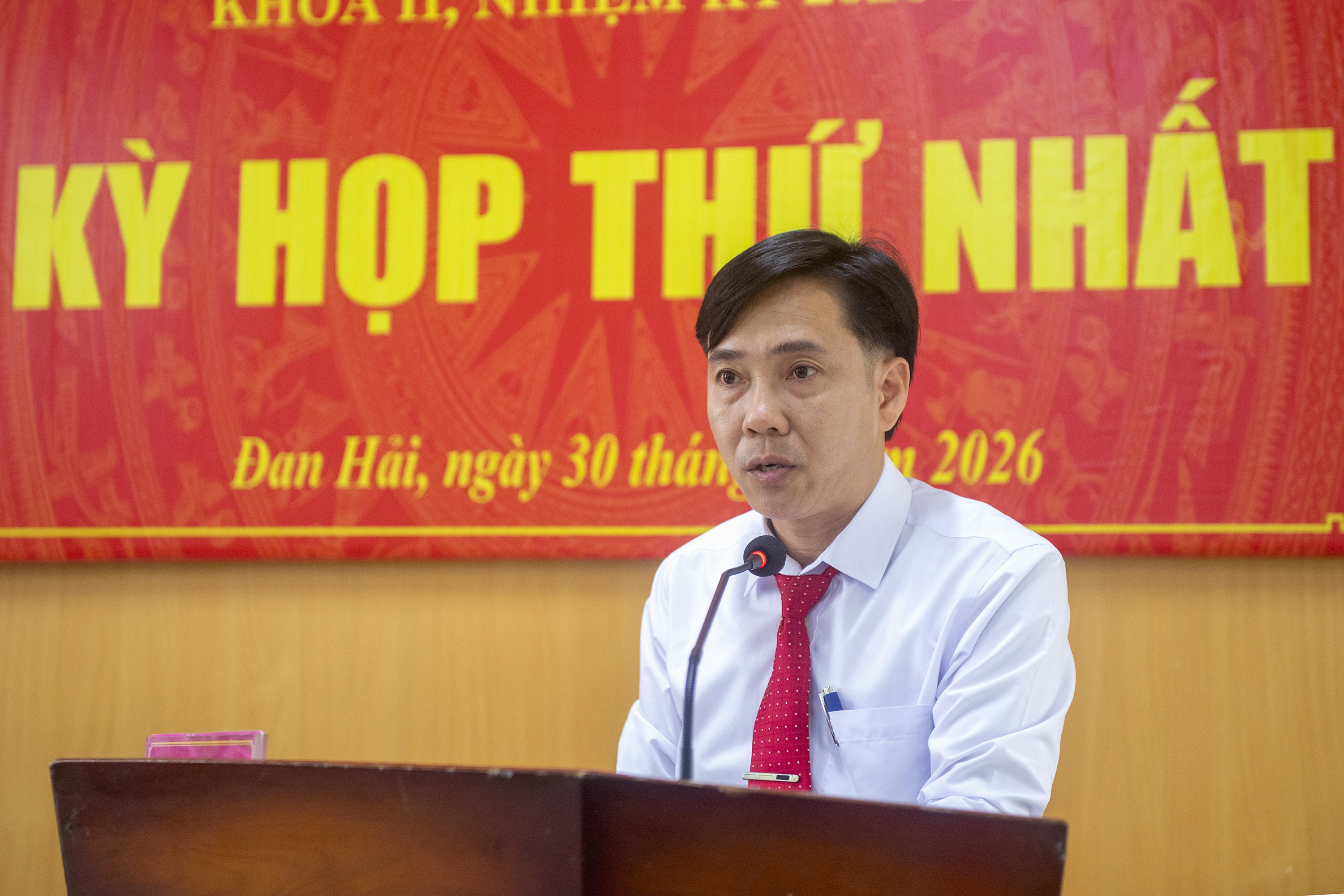 Phát biểu bế mạc kỳ họp, Bí thư Đảng ủy, Chủ tịch HĐND xã Nguyễn Trọng Vân khẳng định thành công của Kỳ họp thứ nhất là tiền đề, là nền tảng quan trọng để bộ máy chính quyền xã Đan Hải nhiệm kỳ 2026 – 2031 sớm đi vào hoạt động ổn định, hiệu lực và hiệu quả.