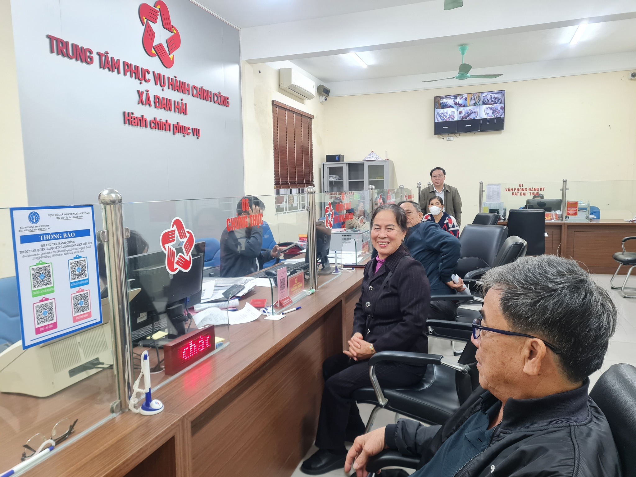 Sáng đầu tuần, tại Trung tâm Phục vụ hành chính công xã Đan Hải có khá đông người dân đến làm thủ tục. Người dân được cán bộ, công chức sẵn sàng hỗ trợ người dân chọn đúng thủ tục để bấm số thứ tự, sao chụp giấy tờ, kiểm tra hồ sơ, cung cấp biểu mẫu, điều phối đến quầy giải quyết.