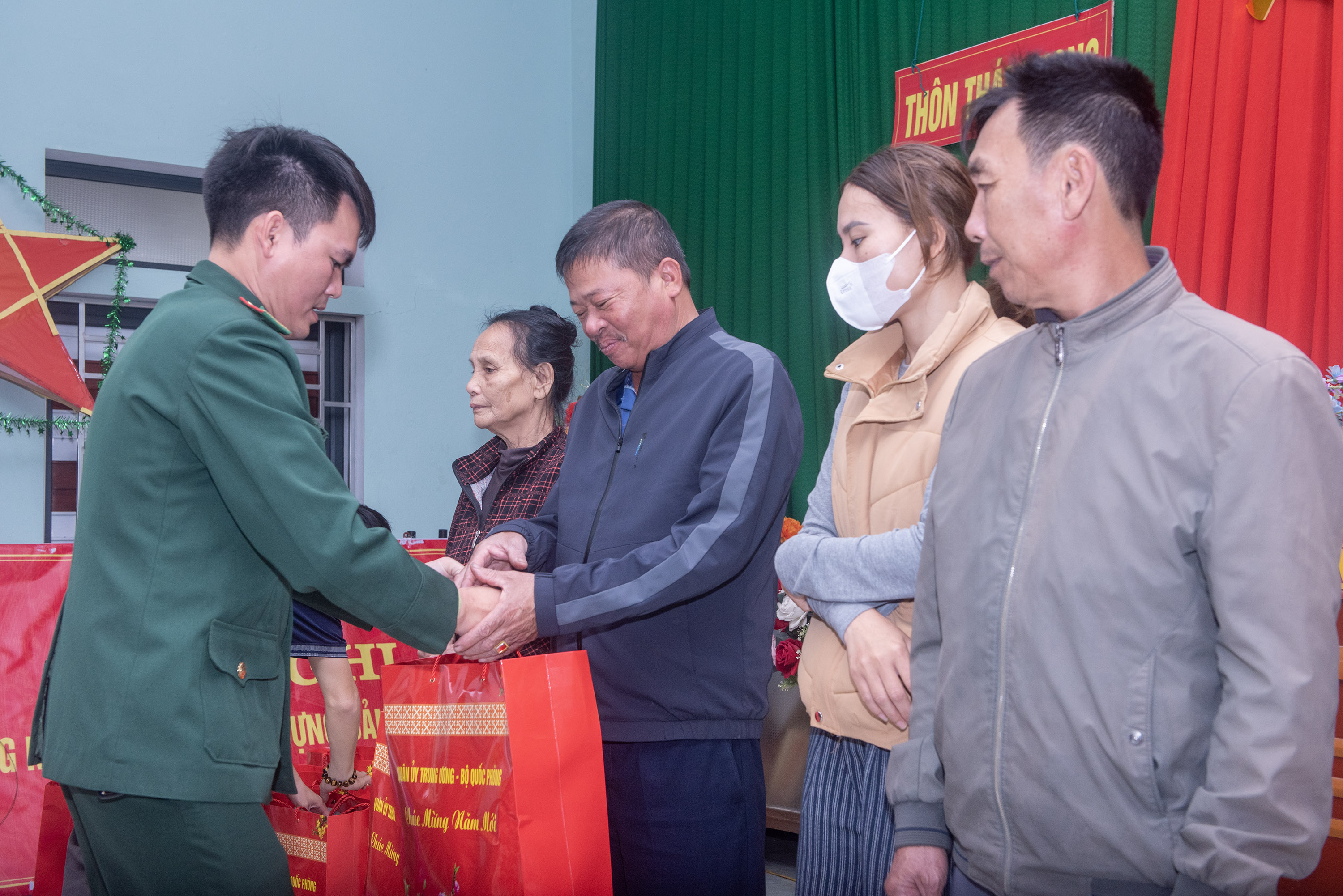 Tại chương trình, đoàn đã trao tận tay tổng cộng 30 suất quà, bao gồm 09 suất quà từ Bộ Quốc phòng và 21 suất quà từ Công ty tôn thép Nam Nhung. Những món quà không chỉ mang giá trị vật chất mà còn là sự động viên tinh thần to lớn, thể hiện truyền thống "Uống nước nhớ nguồn", "Lá lành đùm lá rách" của dân tộc; đồng thời thắt chặt thêm tình đoàn kết quân dân gắn bó nơi địa bàn biên giới biển.