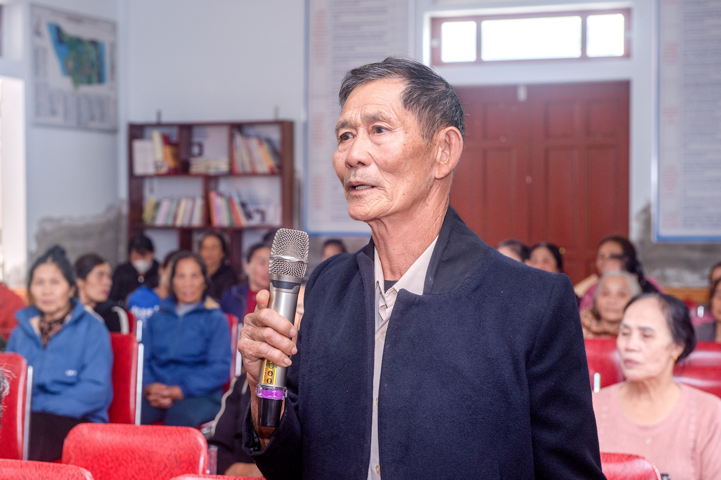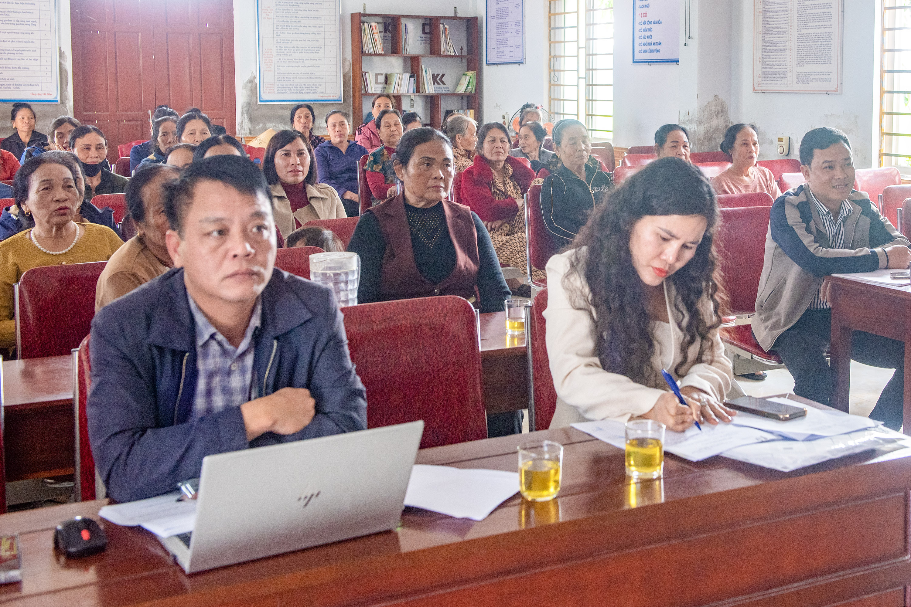 Tham dự hội nghị có đồng chí Phạm Xuân Lương - Phó Chủ tịch UBND xã, cùng các đồng chí trong cấp ủy Chi bộ, Ban cán sự thôn và 56 cử tri đại diện cho các hộ gia đình trong thôn.