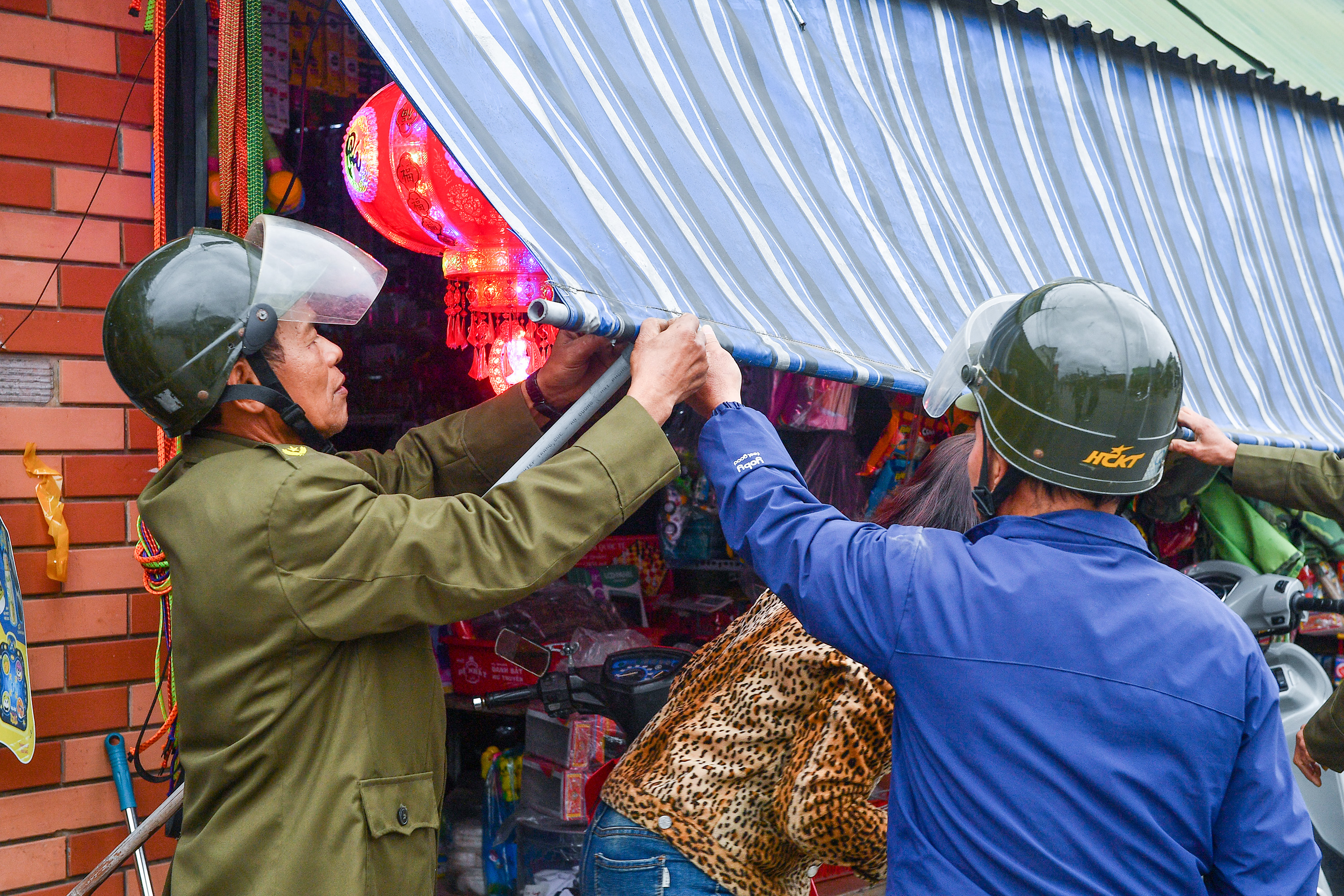 Đối với các trường hợp biển hiệu, biển quảng cáo đặt sai quy định, mái che, mái vẩy gây cản trở tầm nhìn hoặc cành cây che khuất biển báo, đèn đường..., lực lượng làm nhiệm vụ đã hỗ trợ người dân tháo dỡ, phát quang ngay trong buổi chiều.
