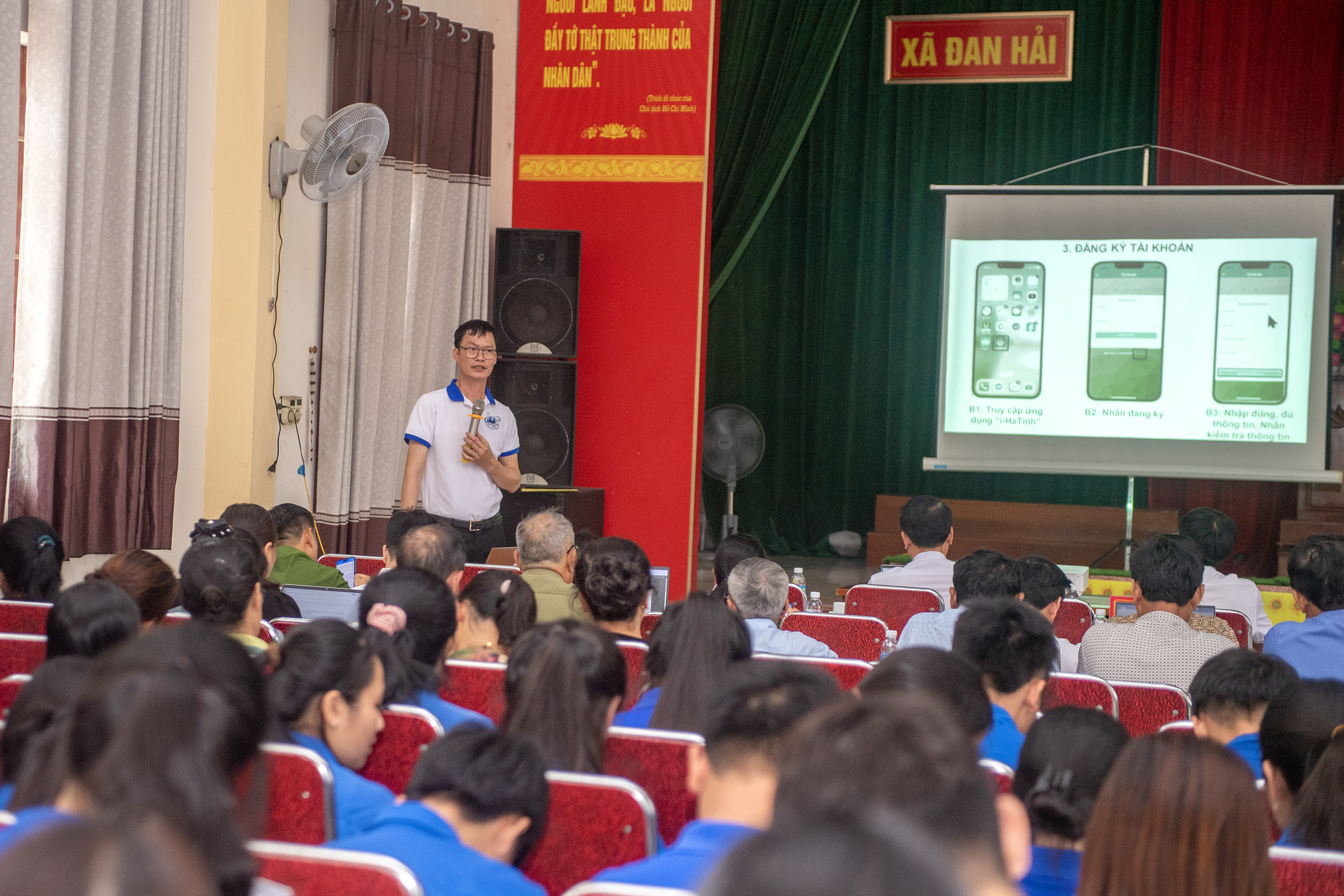 Cũng tại hội nghị các giảng viên từ Sở Khoa học và Công nghệ đã tổ chức tập huấn kỹ thuật cho các đại biểu: Hướng dẫn quy trình cài đặt và đăng ký tài khoản i-HaTinh. Cách thức gửi phản ánh hiện trường về các vấn đề bất cập tại địa phương. Khai thác các tiện ích công dân số tích hợp trên ứng dụng. Với sự hỗ trợ trực tiếp từ các tình nguyện viên và Tổ chuyển đổi số cộng đồng, 100% cán bộ, công chức tham gia và đông đảo người dân có mặt đã cài đặt thành công ứng dụng ngay tại hội trường. Sự kiện thành công tốt đẹp đã tạo tiền đề quan trọng để xã Đan Hải sớm hoàn thành mục tiêu xây dựng chính quyền số và xã hội số, nâng cao chất lượng đời sống cho nhân dân./.