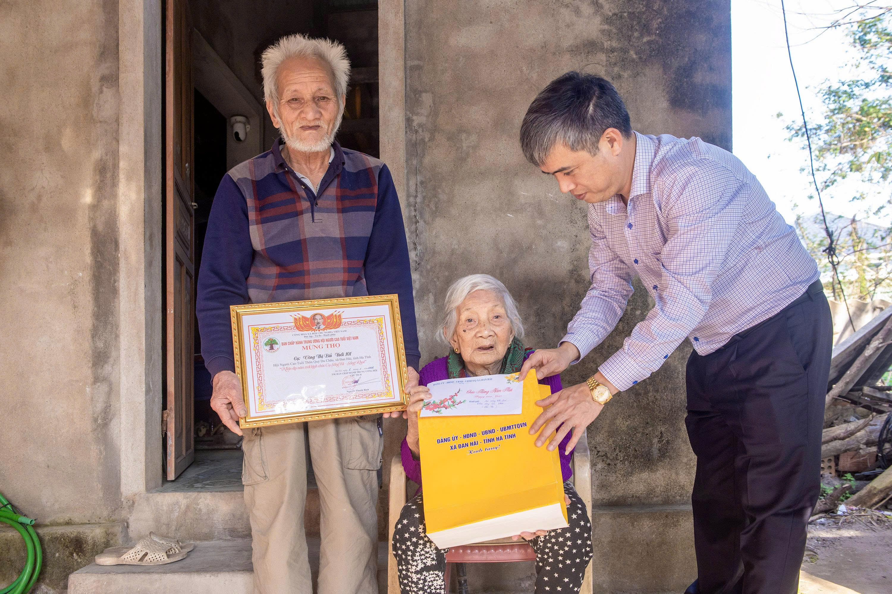 Tại các gia đình có cụ tròn 100 tuổi và trên 100 tuổi, đoàn công tác đã trang trọng trao thiếp mừng thọ của Chủ tịch nước, tặng quà và gửi lời chúc sức khỏe, trường thọ tới các cụ. Đồng thời, các đoàn cũng đến thăm hỏi, động viên, trao quà Tết cho các gia đình chính sách, thương binh, bệnh binh nặng, hộ nghèo và các hộ có hoàn cảnh đặc biệt khó khăn.