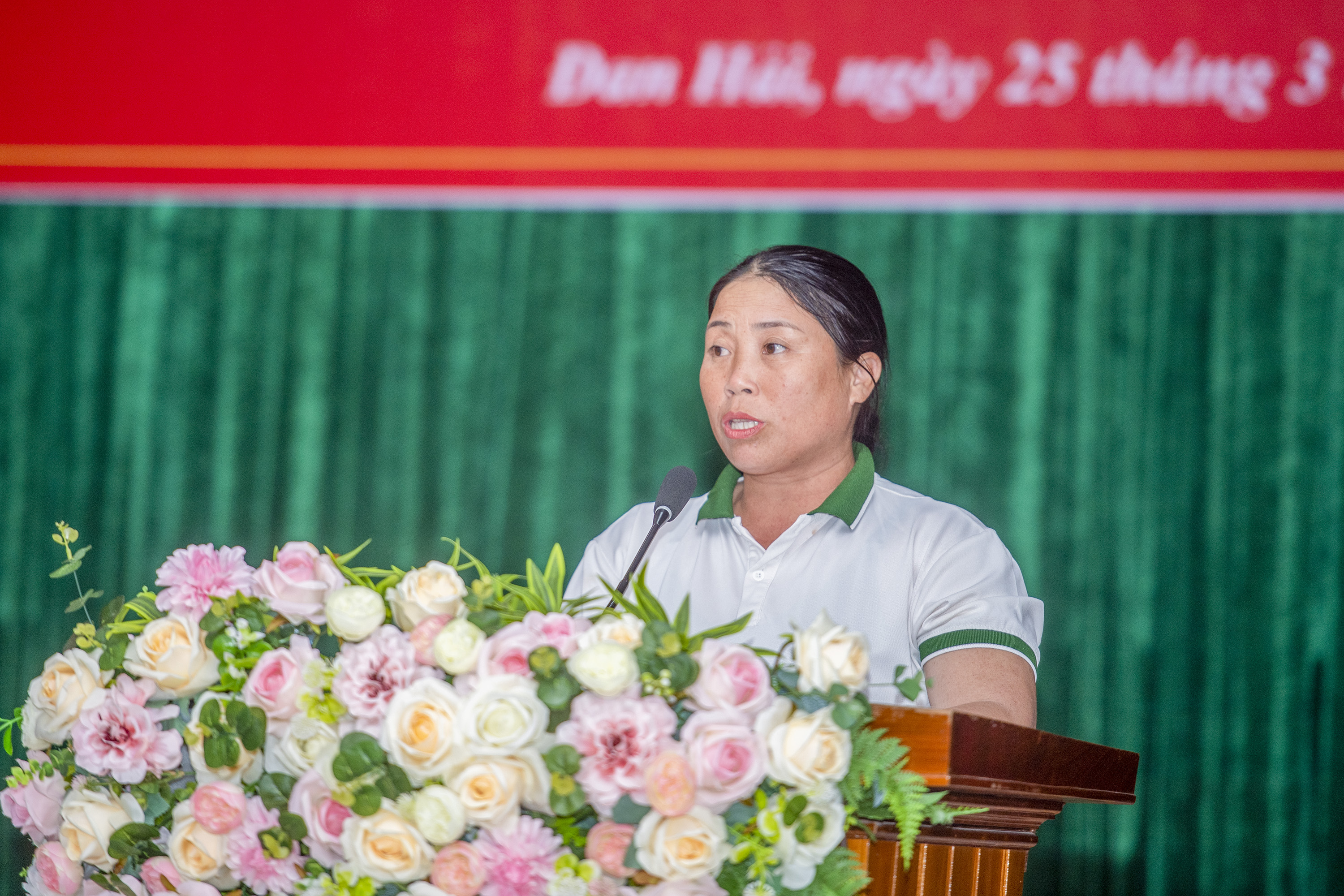 Đồng chí Trần Quỳnh Thao – Phó Bí thư Đảng ủy, Chủ tịch UBND xã phát biểu tại hội nghị